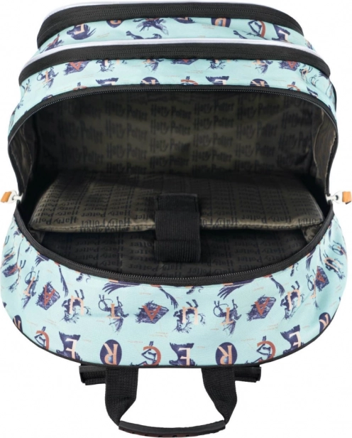 Stylowy szkolny zestaw z motywem HARRY POTTER obejmuje ergonomiczny plecak CORE o pojemności 25 l i wadze jedynie 900 g, solidny piórnik oraz praktyczny worek. Plecak ma 3 komory z organizerem, kieszeń na laptop 15", boczne kieszenie z siatki, wodoodporny materiał oraz elementy odblaskowe dla większego bezpieczeństwa.