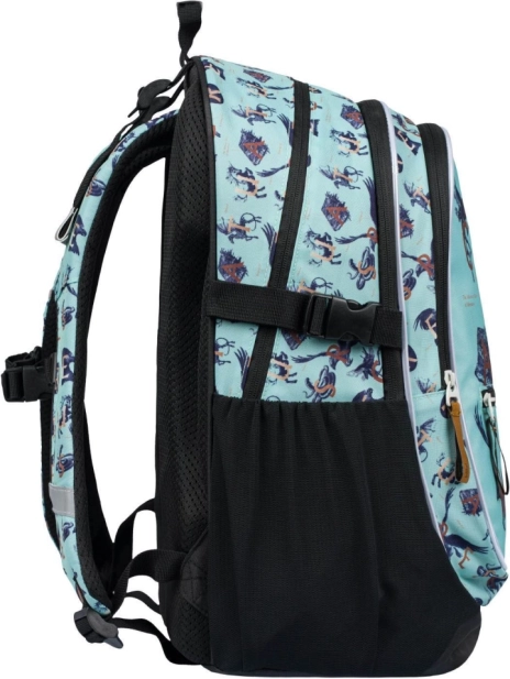 Solidny piórnik z odchylaną przegrodą, kieszenią na zamek i miejscem na plan lekcji wraz z wytrzymałym workiem na obuwie lub rzeczy na czas wolny dopełniają zestaw w każdym detalu.