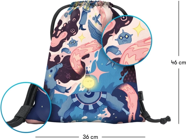 Dzięki ściąganiu za pomocą solidnych sznurków worek szybko zamkniesz, a jednocześnie możesz go wygodnie nosić na plecach jak plecak. Idealny do szkoły, na zajęcia, treningi i wycieczki.