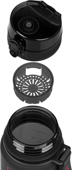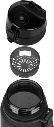 Zamykane wieczko z blokadą zapobiega przypadkowemu otwarciu w plecaku, a mechanizm flip-top umożliwia szybkie picie jedną ręką. Wyjmowane sitko sprawdzi się do lemoniad owocowych lub herbat liściastych – materiał nadaje się także do gorących napojów. W zestawie pętelka do wygodnego noszenia.