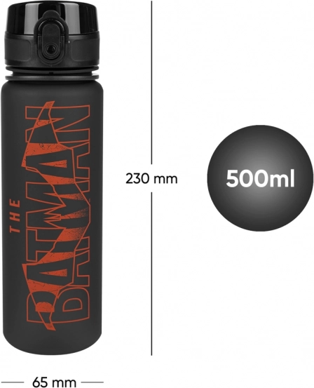 Ta czarna butelka z ikonicznym czerwonym logo BATMAN zachwyca designem i funkcjonalnością. Lekkie, wytrzymałe korpus z tritanu dobrze leży w dłoni, nie pochłania zapachów i jest bezpieczne dla zdrowia (bez BPA, PVC i ftalanów). Praktyczna pojemność 500 ml oraz czytelna podziałka do kontroli spożycia płynów czynią z niej świetnego towarzysza na co dzień.