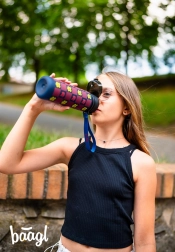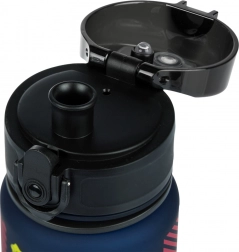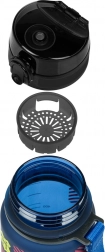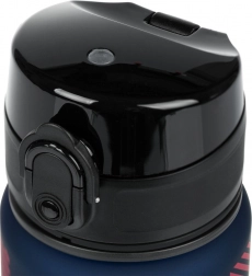 Pokrywkę z przyciskiem i blokadą można łatwo obsługiwać jedną ręką, a mechanizm niezawodnie zapobiega przypadkowemu wylaniu napoju w plecaku.