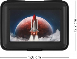 Pudełko na lunch BAAGL Space Shuttle to doskonały wybór dla tych, którzy szukają praktycznego i funkcjonalnego opakowania na lunch. Ten czarny plastikowy box jest wyposażony w zamknięcie na jeden zamek, które zapewnia bezpieczne przechowywanie żywności wewnątrz. Jego przegródka pozwala na podział przestrzeni, co pomaga utrzymać poszczególne części lunchu oddzielone.