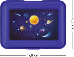 Przedstawiamy stylowe i praktyczne pudełko na przekąski z motywem planet. To pudełko zostało wykonane z solidnego plastiku i oferuje dużo miejsca na ulubione potrawy.