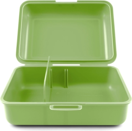 Wewnątrz pudełka znajduje się praktyczna przegroda dzieląca, która umożliwia oddzielenie różnych rodzajów jedzenia i lepszą organizację.