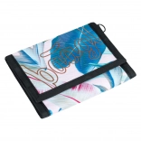 Ten elegancki portfel oferuje nie tylko stylowy kwiatowy design, ale także praktyczne cechy do codziennego użytku. Wykonany z trwałego materiału, zapewnia długą żywotność. Bezpieczne zapięcie na rzep gwarantuje, że Twoje rzeczy pozostaną na swoim miejscu. Dzięki praktycznemu oczku łatwo przypniesz go do karabińczyka lub innego solidnego uchwytu.