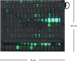 Portfel wyróżnia się czarno-zielonym wzorem binarnym, który spodoba się wszystkim miłośnikom kultury cyfrowej.