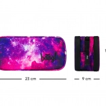 Piórnik Galaxy dla uczniów łączy funkcjonalność i styl z unikalnym designem galaktycznym w odcieniach fioletu i różu. Wykonany z wysokiej jakości tekstyliów, oferuje trzy osobno zamykane komory na suwak do łatwego podziału i organizacji rzeczy. Zewnętrzna powierzchnia jest wykonana z trwałego materiału, który chroni zawartość piórnika. Dzięki przejrzystemu wnętrzu znajdziesz miejsce na różne drobiazgi, takie jak gumki, temperówki i inne przybory szkolne. Praktyczna rączka umożliwia łatwe noszenie piórnika lub jego zawieszenie na plecaku.