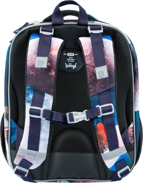 Aktówka SHELLY z motywem Space Shuttle łączy zdrową ergonomię i wytrzymałą konstrukcję. System pleców AIR ERGO ADJUSTABLE SYSTEM doskonale dopasowuje się do sylwetki dziecka, wspiera prawidłową postawę ciała i umożliwia przepływ powietrza wzdłuż kręgosłupa. Ergonomicznie ukształtowane plecy oraz w pełni regulowane szelki ramienne i piersiowe zapewniają wygodne i zdrowe noszenie przez cały szkolny dzień.