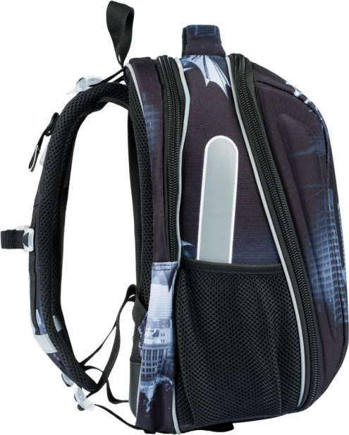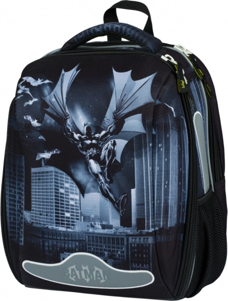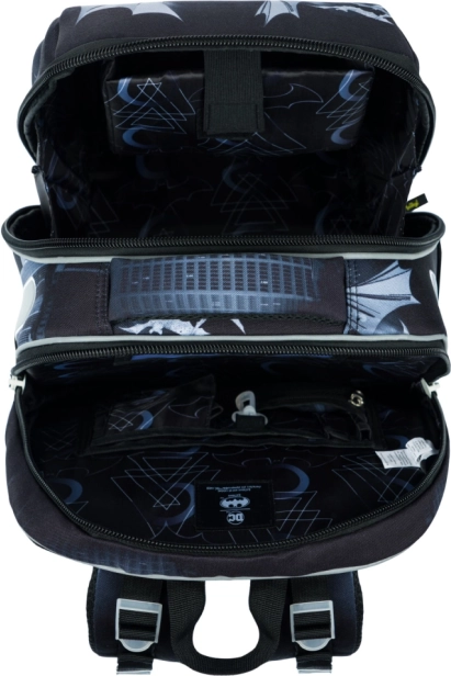 Lekki i stabilny tornister szkolny dla pierwszoklasistów i młodszych uczniów z motywem BATMAN Dark City. Oferuje sztywną, wzmocnioną konstrukcję dla maksymalnej ochrony zeszytów, układ dwukomorowy dla przejrzystego noszenia, oddychające plecy z systemem Air Ergo Adjustable oraz elementy odblaskowe dla bezpieczeństwa. Niska waga zaledwie 1000 g, pojemność 23 l i praktyczny organizer na wszystko, co potrzebne do szkoły.