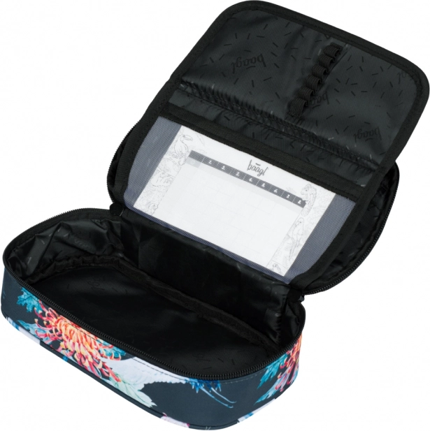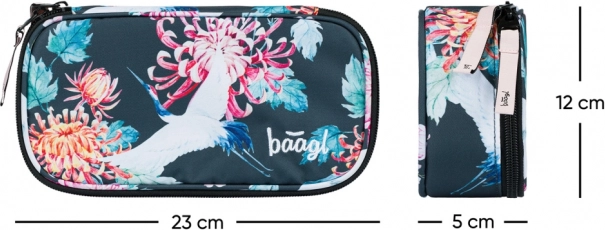 Stylowy szkolny piórnik BAAGL Birds z eleganckim motywem kwiatowym i żurawiami oferuje solidną konstrukcję, odchylaną wewnętrzną przegrodę dla przejrzystego ułożenia, kieszeń na suwak oraz kieszeń na plan lekcji. Idealny dla uczniów, którzy chcą mieć wszystko pod ręką i w porządku. Piórnik jest bez wyposażenia.