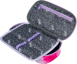 Dzięki odchylanej przegrodzie szybko znajdziesz to, czego akurat potrzebujesz, a wewnętrzna kieszeń na zamek bezpiecznie ukryje drobiazgi. Kieszeń na plan lekcji ułatwi organizację szkolnego dnia. Piórnik jest dostarczany bez wyposażenia, więc możesz wyposażyć go w ulubione akcesoria.