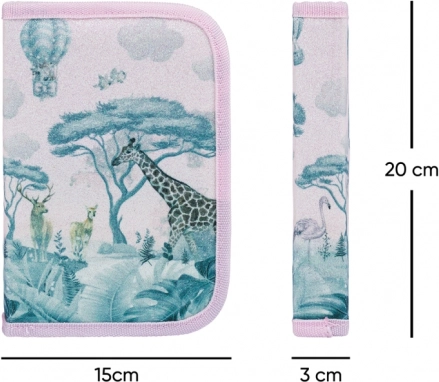 Odkryj przejrzysty i wytrzymały piórnik z subtelnym safari w różowo-niebieskiej kolorystyce. Dzięki dwóm skrzydełkom i przemyślanemu układowi wewnętrznemu utrzyma wszystkie przybory piśmiennicze na swoim miejscu, pozostając jednocześnie kompaktowy i lekki do codziennego plecaka szkolnego.