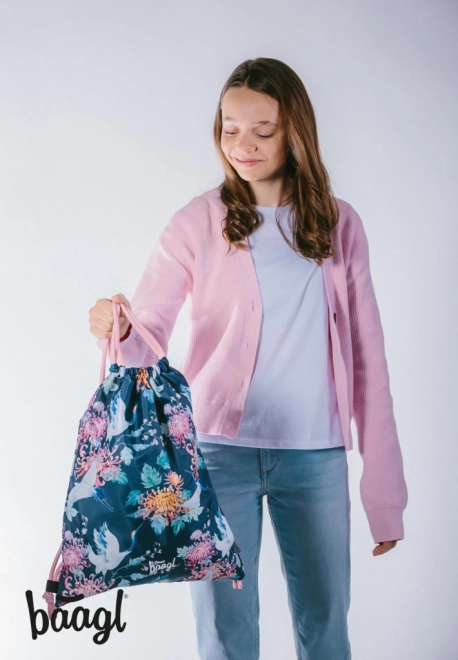 Różowe sznurki umożliwiają łatwe noszenie na plecach i zapewniają komfort podczas ruchu.