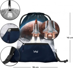 Worek BAAGL Space Shuttle doskonale uzupełnia szkolne wyposażenie dzięki karabińczykowi, który umożliwia jego przypięcie do tornistra. Został wykonany z mocnego materiału, który zapewnia długą żywotność i łatwą pielęgnację. W dolnej części worka znajduje się praktyczna kieszonka na zamek do przechowywania drobiazgów.