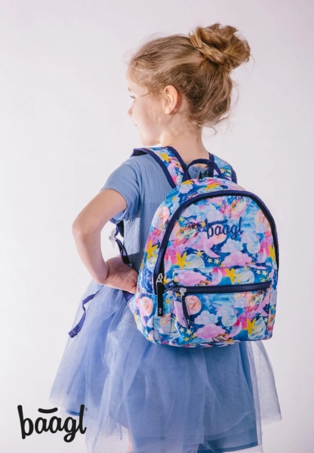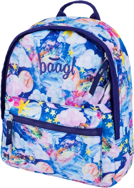 Odkryj stylowy przedszkolny plecak BAAGL z kosmicznym nadrukiem pełnym gwiazd, planet i kolorowych chmur. Dzięki lekkiej konstrukcji i przemyślanej ergonomii wygodnie noszą go nawet najmłodsze dzieci.