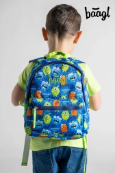 Wesołe motywy „monsters” w intensywnych kolorach bawią dzieci i zachęcają do samodzielnego noszenia plecaczka do przedszkola i na wycieczki.