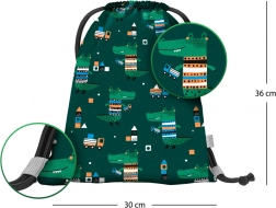 Wesoły przedszkolny worek z motywem krokodyla jest idealny na obuwie i drobiazgi do przedszkola oraz na czas wolny. Wykonany z mocnego, zmywalnego materiału, a dzięki solidnym sznurkom wygodnie nosi się go na plecach.