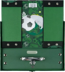 Szukasz trwałego, a jednocześnie stylowego szkolnego kufra do przenoszenia przyborów plastycznych, zeszytów czy drobiazgów? Składany szkolny kufer BAAGL z motywem piłkarskim zachwyca nie tylko wyglądem, ale i funkcjonalnością. Solidny laminowany papier oraz okute rogi gwarantują długą żywotność, metalowe okucia zapewniają stabilność, a klasyczna sprzączka dba o bezpieczeństwo zawartości.