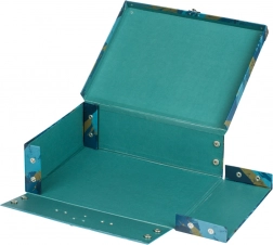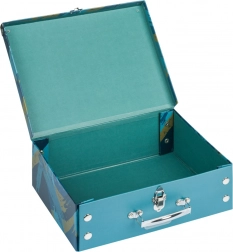 • Składany kuferek z wytrzymałego laminowanego papieru z okuciami na rogach.