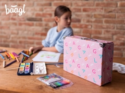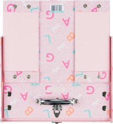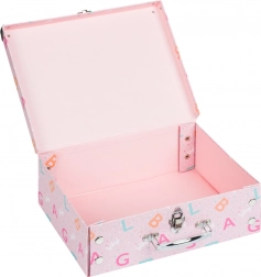 Składany kuferek BAAGL Logo w różowym kolorze łączy radosny design z praktyczną funkcjonalnością. Solidny laminowany papier i okute rogi zapewniają długą żywotność, a metalowy uchwyt i niezawodna sprzączka ułatwiają codzienne użytkowanie w szkole i w domu.