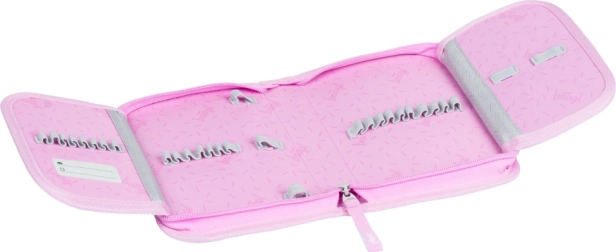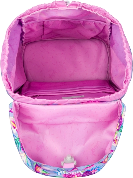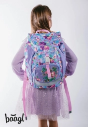 Jednokomorowy układ plecaka z kieszenią na teczki ułatwia orientację, przednia kieszeń bezpiecznie pomieści pudełko śniadaniowe, a boczne kieszenie z gumką utrzymają butelkę na miejscu. Magnetyczne zapięcie jest proste w obsłudze dla każdego pierwszoklasisty. Piórnik z dwiema klapkami jest przejrzysty i wytrzymały, gotowy do wyposażenia. Worek z mocnego, zmywalnego materiału ma dolną kieszeń na zamek, karabińczyk do przypięcia do plecaka oraz ściąganie za pomocą solidnych sznurków, dzięki czemu wygodnie nosi się go na plecach.
