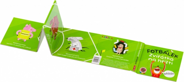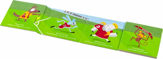 Leporello dla najmłodszych, które oferuje zabawne i kolorowe spojrzenie na mecz piłki nożnej między zwierzątkami na boisku. Idealne dla ciekawych dzieci.
