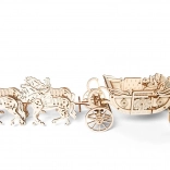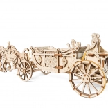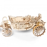 Zbuduj ikoniczny model inspirowany brytyjskim „State Landau” – mechaniczny drewniany powóz z czterokonnym zaprzęgiem, który po naciągnięciu przejedzie aż 4 metry. Zestaw zawiera 290 precyzyjnie wycinanych elementów, otwierane drzwi, wymienne figurki oraz realistyczne zawieszenie powozu dla płynnego ruchu. Idealny dla fanów marki UGEARS, modelarstwa i designerskich dekoracji.