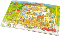 W mieście ciągle coś się dzieje – kopie się, naprawia, buduje i upiększa. Dzieci będą na stronach wyszukiwać ciężarówki, betoniarki, koparki, dźwigi czy wózki widłowe, poznają pracę rzemieślników oraz to, jak nad wszystkim czuwają brygadzista i kierownik budowy. Nie zabraknie też architekta, fotografa czy ogrodnika oraz mnóstwa postaci z własnymi mikroopowieściami. Ta książka o budowie to świetna wyszukiwanka (wimmelbook), która w naturalny sposób rozwija umiejętność opowiadania i koncentrację.
