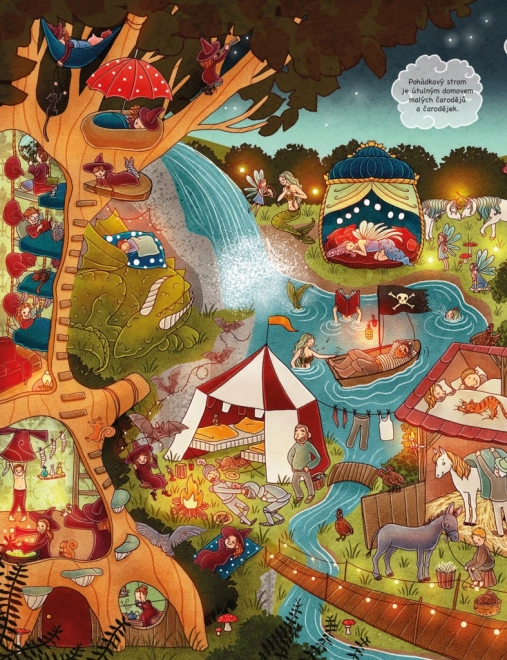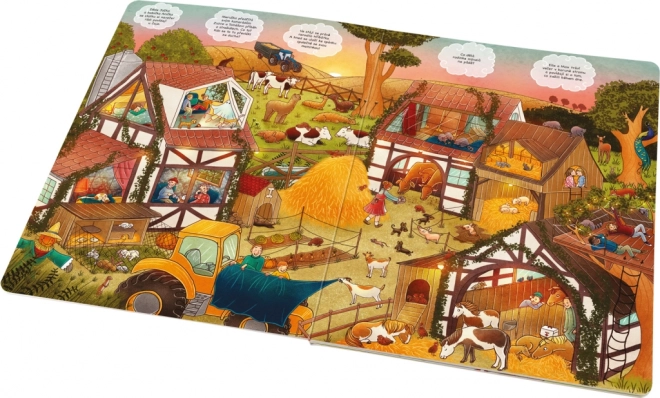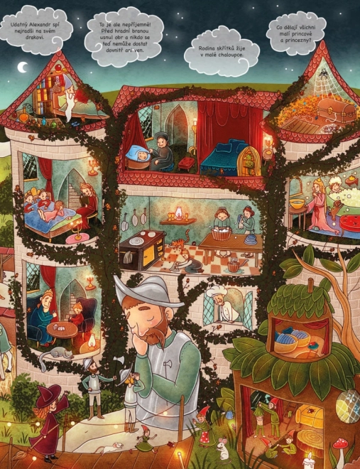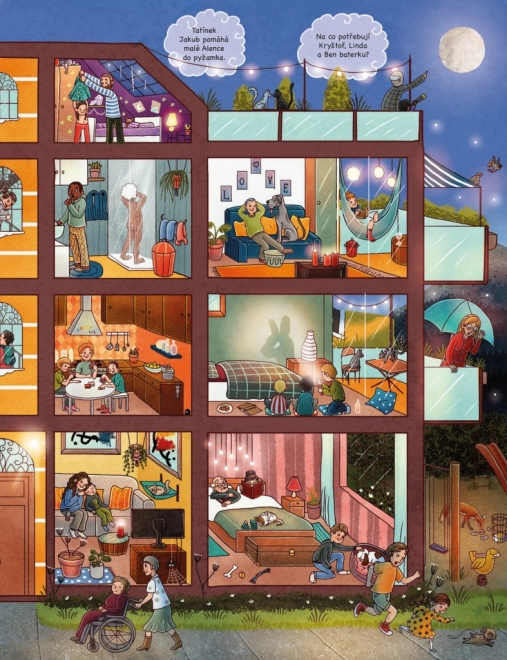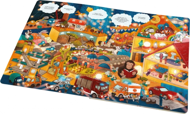 Odkrywajcie z dziećmi, co się dzieje, gdy świat wokół zasypia. Strony pełne szczegółowych ilustracji otwierają drzwi na farmę, do tętniącego życiem miasta i głębokiego lasu – a nie brakuje też świata zabawek, które nocą ożywają. Książka zaprasza do wielokrotnego oglądania i wspólnego opowiadania.