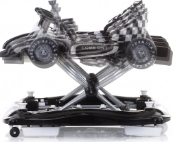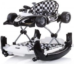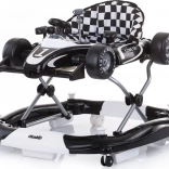 Dzięki trzem poziomom wysokości siedziska chodzik rośnie razem z dzieckiem. Przednie kółka z obrotem 360° ułatwiają manewrowanie, sześć blokad chroni przed przewróceniem i upadkiem ze schodów. Odpinany panel można zmienić w samodzielne autko do pchania – idealne do rozwoju motoryki dużej.