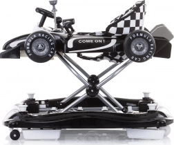 Odpinany panel w kształcie bolidu wspiera rozwój zmysłów i można go zamienić w autko do pchania.
