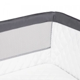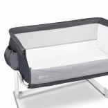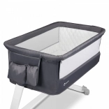 Łóżeczko wyposażono w solidne pasy mocujące do bezpiecznego połączenia z łóżkiem rodziców. Wygodny materac zapewnia dziecku zdrową pozycję podczas snu, a projekt spełnia europejskie normy EN 1130 i 16890.