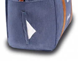 Pojemna torba do wózka LIONELO Ida w eleganckim odcieniu Blue Denim to praktyczny pomocnik dla rodziców na co dzień. Oferuje 7 kieszeni, w tym kieszenie termo na butelki, szybki dostęp do chusteczek nawilżanych oraz mocny, wytrzymały materiał. W zestawie znajdziesz przewijak, kosmetyczkę i paski do mocowania na wózku.