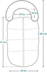 W zestawie odpinane futerko na guziki dla zmiennego stylu i dodatkowego ciepła. Antyalergiczna wypełna doskonale izoluje, a jednocześnie śpiworek dobrze cyrkuluje powietrze. Łatwa pielęgnacja – można prać w 30 °C.
