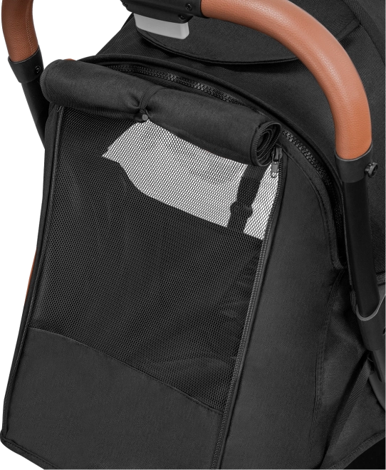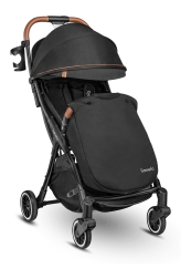 Wózek łatwo złożysz do małych wymiarów i umieścisz w dołączonej torbie. Wyposażenie uzupełnia osłona na nóżki, moskitiera oraz uchwyt na napoje.