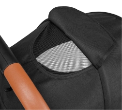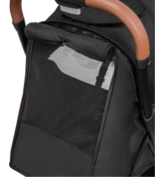 Dla maksymalnego komfortu dziecka nie brakuje płynnej, wielostopniowej regulacji oparcia za pomocą pokrętła, regulowanego podnóżka oraz wielostopniowej budki z panelem z siatki dla lepszej cyrkulacji powietrza. Rodzice docenią odpinany pałąk, rączkę z eko‑skóry, duży kosz na zakupy i bogate wyposażenie.