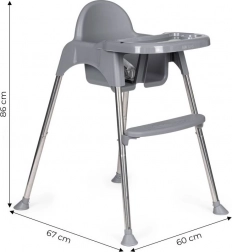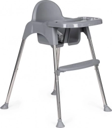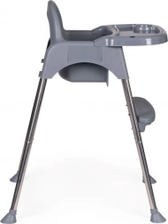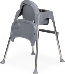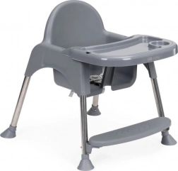 Dzięki sprytnemu rozwiązaniu łatwo przekształcisz wysokie krzesełko w niższy fotelik – wystarczy odkręcić część nóg i podnóżek. Sprawdzi się nie tylko do karmienia, ale też jako bezpieczne miejsce do rysowania i tworzenia bez obaw o zabrudzenie otoczenia. Metalowe nogi z antypoślizgowymi stopkami chronią podłogę i zapewniają stabilność, 3‑punktowe pasy oraz blokada przed zsunięciem zwiększają bezpieczeństwo.