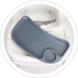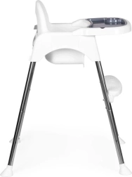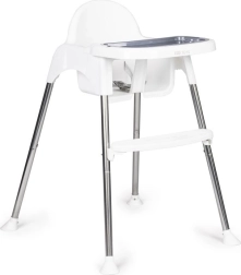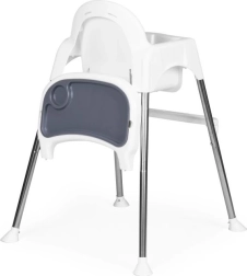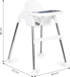 Nowoczesne krzesełko do karmienia 2w1 wykonane jest z wysokiej jakości materiału. Krzesełko jest odpowiednie dla dzieci od 6 do 36 miesięcy. Może być złożone w dwóch wysokościach. Zalety krzesełka: wygodne siedzisko z zabezpieczeniem przed zsunięciem, 5-punktowe pasy bezpieczeństwa, stabilne, antypoślizgowe nóżki, praktyczny podnóżek, zdejmowany plastikowy stolik. Wymiary złożonego krzesełka to ok. 86 x 67 x 60 cm. Maksymalne obciążenie wynosi 15 kg.