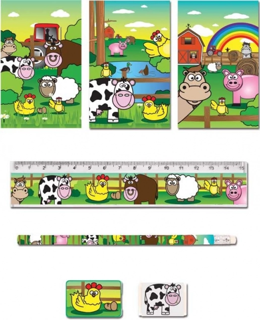 Ten wesoły zestaw przyborów piśmienniczych z farmowymi zwierzątkami wspiera kreatywność i radość z pisania. Kompaktowe wymiary mieszczą się w każdym plecaku lub piórniku, więc dzieci mogą mieć go zawsze pod ręką. Motyw ilustracyjny może się nieznacznie różnić, jednak zawsze zachowuje radosny, farmerski styl.