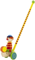 Podczas pchania wesoły klaun porusza się i obraca, wspierając dziecięcą ciekawość i motywując do dalszego pchania zabawki.