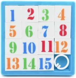 Popularna gra logiczna w podróż i do domu. Kwadratowe płytki z liczbami umieszczone są w solidnej ramce i dzięki prowadnicom można je łatwo przesuwać w górę, w dół, w lewo i w prawo. Celem jest ułożenie liczb od 1 do 15 – idealne wyzwanie dla dzieci i dorosłych.
