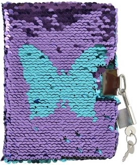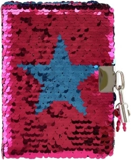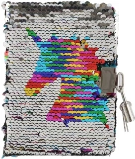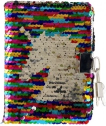 Stylowy tajny pamiętnik z dwustronnymi cekinami, które po przesunięciu zmieniają wygląd i kolory. Dla większej prywatności pamiętnik ma metalowy zamek z kluczykami, w środku znajdują się czyste, nieliniowane strony do pisania i rysowania. Kompaktowe wymiary 11 × 15 × 2 cm sprawiają, że to idealny dodatek do szkoły i w podróż. Dostarczamy mix motywów i kolorów w zależności od dostępności w magazynie.