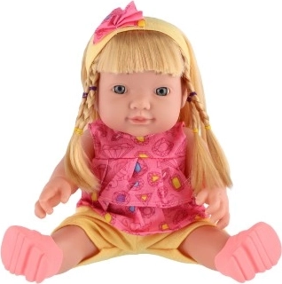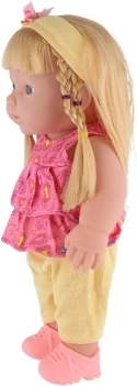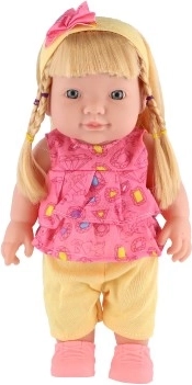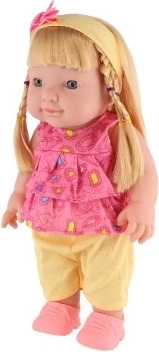 Ta realistyczna lalka o wysokości 30 cm to świetny wybór do rozwijania wyobraźni i umiejętności społecznych. Ma solidne plastikowe ciało, długie włosy do czesania i jest ubrana w wesołe, kolorowe stroje. Wbudowany moduł dźwiękowy aktywuje się po wyjęciu blokady umieszczonej w mechanizmie na plecach.