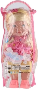 Lalka po wyjęciu blokady na plecach wydaje urocze dźwięki. Baterie 3× AG13 znajdują się w zestawie, więc dzieci mogą bawić się od razu.
