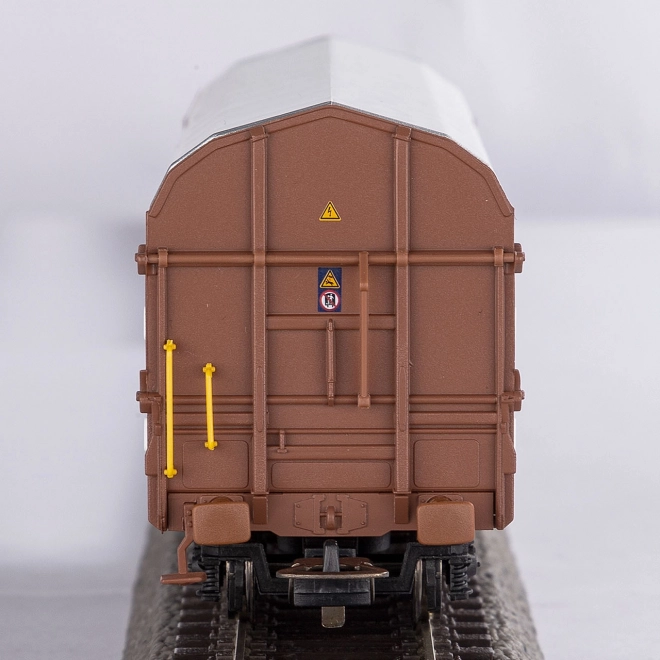 Ten zestaw dwóch wagonów został starannie zaprojektowany z dbałością o szczegóły, w tym o precyzyjnie wykonane odlewy podwozia oraz mechanizm zabezpieczenia zadaszenia. Ich pokrywy można zdjąć, co odkrywa złożone wnętrze z miejscami na ładunek - w zestawie znajduje się próbka w postaci zwoju blachy. Wagony wyposażone są w atrakcyjne, kolorystyczne detale kontrastujące, takie jak uchwyty i zaczepy, oraz posiadają wysokiej jakości lakier i precyzyjny nadruk uchwycający najmniejsze detale.