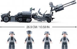 Ten zestaw klocków dostarcza kompleksowe elementy do tworzenia scenariuszy wojskowych z niemiecką techniką przeciwlotniczą. Główne części obejmują wyrzutnię rakiet, działo przeciwlotnicze, pojazd opancerzony oraz specjalny motocykl gąsienicowy. Łącząc elementy, możesz zbudować duży model mobilnej jednostki szturmowej.