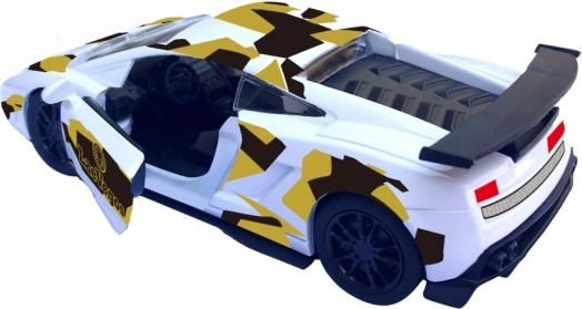 Ten metalowy model sportowego auta LAEVEGOS łączy realistyczne detale z wytrzymałą konstrukcją. Dzięki otwieranym drzwiom i funkcji pull back dzieci i kolekcjonerzy mogą cieszyć się dynamiczną jazdą oraz atrakcyjną ekspozycją na półce. Dostępny w trzech oryginalnych wzorach, które przyciągają wzrok dynamicznymi motywami i sportowymi liniami.