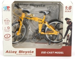 Model oferuje wiernie odwzorowaną ramę, pedały, kierownicę oraz siodło, dzięki czemu przypomina miniaturę prawdziwego roweru górskiego.