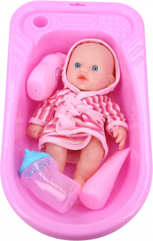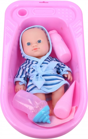 Zestaw kąpielowy z lalką obejmuje wanienkę i ręcznik do realistycznej zabawy. Idealny dla dzieci, które uwielbiają opiekować się swoimi zabawkami.